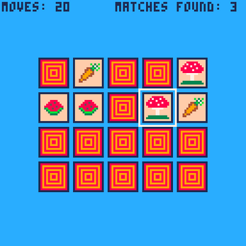 Flip over cards to find matching pairs of fruits, vegetables and mushroom. The goal is to remember where each card is and match all the pairs. It’s a great way to improve memory skills while having lots of fun!